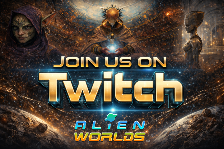 Join the @AlienWorlds Twitch stream for an interactive game night. Uncover hidden clues in official artwork to win a share of $TLM rewards.